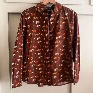 In excellent condition button down by Samantha Pleet. There’s a heart pocket on the left side. 100% Cotton. Rare and one of a kind. No care tag or size tag available but fits like a small. Please refer to measurements for accurate sizing. The main color of the shirt is like a burgundy red.