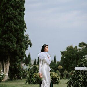 Hi ladies! I got two versions of my wedding dress couple of months ago (one satin and the other - matte fabric) and went with the satin one for the wedding day. I am selling the matte one shown on the last two pictures. New, never worn. All details besides the material style (matte vs shimmer) are identical. These are my real photos of the dress.
