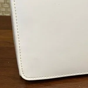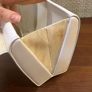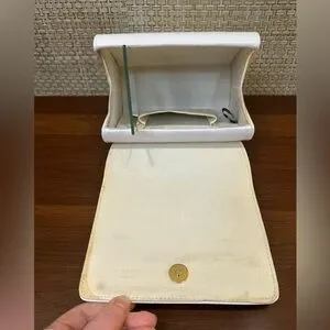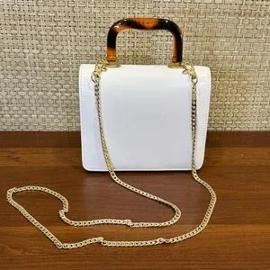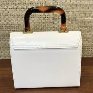 🌟HP🌟VTG 1970s-80s White Vinyl Structured Bag with Acrylic Tortoise Handle Chain