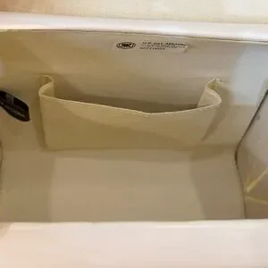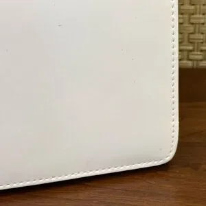 Add vintage style to your ensemble with this 1970s-80s White Vinyl Structured Bag with Acrylic Tortoise Handle & Chain! A well made bag with a structured square box style silhouette, features white vinyl exterior with matching top stitching, gold tone hardware and spectacular acrylic orange and black tortoise handle! Handle has beautiful color and pops with white exterior and gold tone hardware! Includes detachable gold tone chain for shoulder or crossbody wear. Magnetic style clasp opens to a spacious main compartment with slip pocket. Fully lined with off white broadcloth fabric.💕A beautiful white bag is always in style and a vintage bag is the perfect compliment to any ensemble!💕Professionally authenticated.