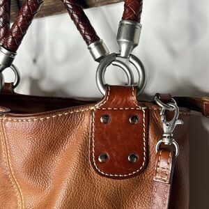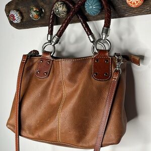 Fossil Leather Handbag with Braided Handles 3 inside arena & Crossbody strap