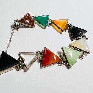 Vintage Midcentury Bracelet - Triangle Faceted Semi Precious Stones - Silver