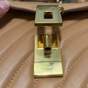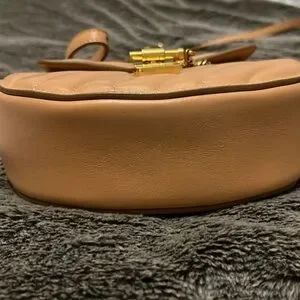Chloe Mini Drew Bijou Bag. Calf skin. Color is “blush pink”. Made in Italy. No dust bag. Has Chloe tag and card attached. Minor scruff and some darkening from use throughout purse. Straps are adjustable and removable. Comes with a removable chain. Top flap closes by magnetic pin. Two compartment purse (one slip pocket). Gold tone hardware with minor scratches. Purse can be carried different ways.