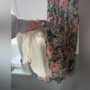 Top is a see through with the floral pattern on, bottom is a cream slip with a lace neck
