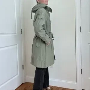 H&M Green Trench Coat with Belt and Adjustable Cuffs