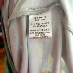 This stunning vintage dress by Komarov is perfect for a night out on the town. The abstract print in shades of blue and green is sure to turn heads, and the figure-flattering silhouette will make you feel confident and beautiful. The dress is made of a stretchy fabric that is both comfortable and stylish, and the short sleeves are perfect for summer weather. Whether you're dressing up for a special occasion or just want to look your best, this dress is a perfect choice.