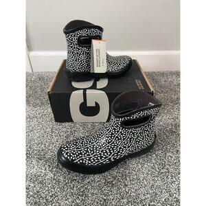Women’s BOG Patch Ankle Rain Boot Size 6 NWT Black And White