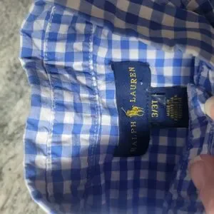 Keywords: Ralph Lauren, boys shirt, button down, gingham, checkered, blue white, long sleeve, size 3T, toddler, kids clothing, preppy, classic, casual, polo ralph lauren