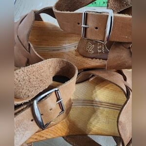 I believe these are in exceptionally good condition for their age. The only known flaws are a light separation in the wood on the back of the left sandal and some nicks and scratches from normal wear. The leather is soft and in like new condition as seen in the pictures. Please ask any questions you think you may have to ensure a confident purchase.