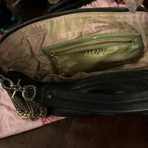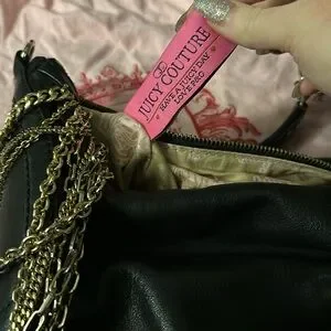 Vintage Juicy Couture black purse with gold chain accents. Gently used, please see inside purse pics for condition. Inside has a zip pocket with iconic Juicy print. Comes in Juicy purse bag for storage.