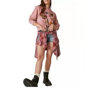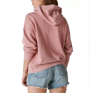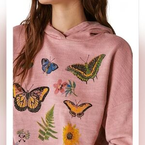 Made of soft fleece cotton, this Lucky Brand hooded sweatshirt shows off a pretty butterfly and flower graphic on the front.