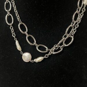WHBM Pearl Chic Silver and Pearl Necklace long