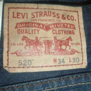 Mens Levi's 520 Slouch Skinny Fit Blue Jeans- Size 34W x 30L