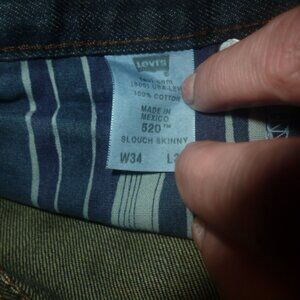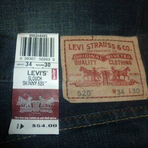 NEW Mens Levi's 520 Slouch Skinny Fit Blue Jeans- Size 34W x 30L