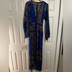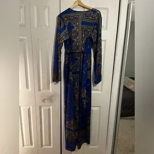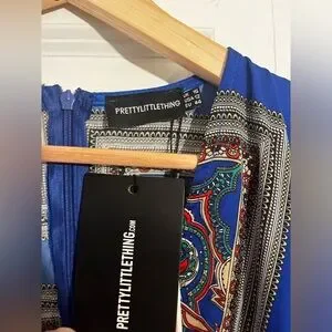Pretty Little Thing Cobalt Print Satin Kimono Maxi Dress
