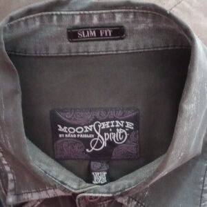 Stylish western shirt by Moonshine Spirit that features a slim fit with embellished sleeves and pearl snap closures. Suitable for casual wear, work, travel and ideal for the rodeo and western theme events.