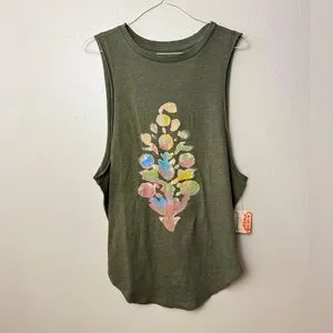 NWT Free People Faded Away Buti Women's High Neck Muscle Tank in Green Size S
