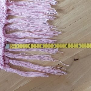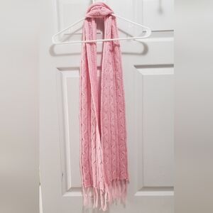 This light pink scarf features a cozy ribbed texture and decorative fringes, making it a stylish addition to your accessory collection. Crafted from a warm knitted fabric, it offers both comfort and elegance with its generous length and medium width.