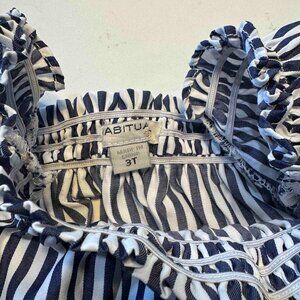 Stripe Top - Habitual 3T Navy and white with puff sleeves and elastic neck
