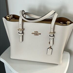 Coach Cream Tote Bag with Textured Leather and Silver Hardware