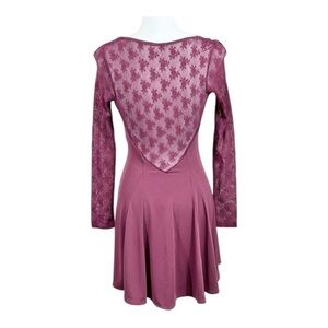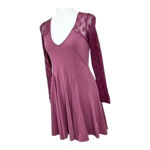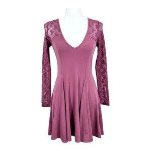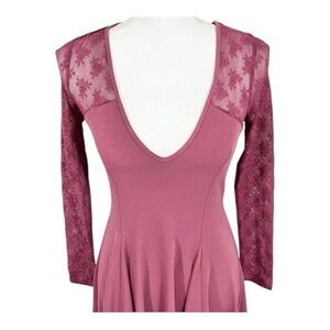 Urban Outfitters Kimchi Blue Lace Deep V Stretchy Long Sleeve Mauve Dress Small