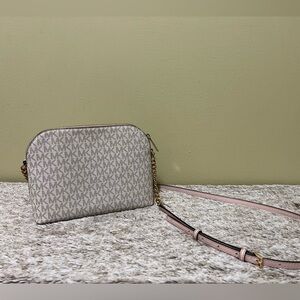 Michael Kors Jet Set Medium Logo Dome Crossbody Bag White/Pink NWOT