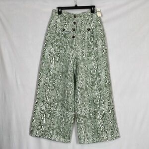 Anthropologie Pants Trousers NWT Size L. Wide Leg High Waist Green And Ivory Print.