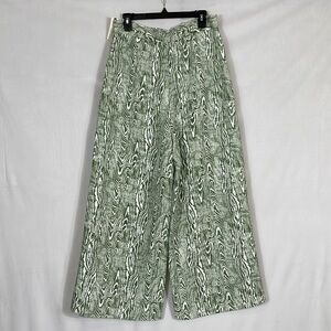 Anthropologie Pants NWT Size L Wide Leg Trouser Green Ivory Print