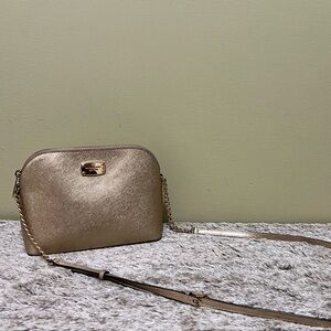 Michael Kors Jet Set Medium Logo Dome Crossbody Bag Gold NWOT