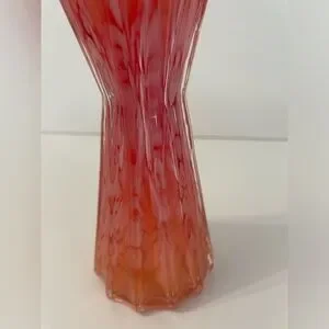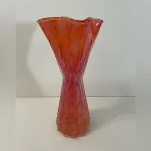 Vintage Pink and Orange Art Glass Ruffled Top Vase Silhouette. Measures 3” W x 3” D x 7” H. No chips or cracks. Please see pictures for condition and don’t hesitate to message if you have any questions.