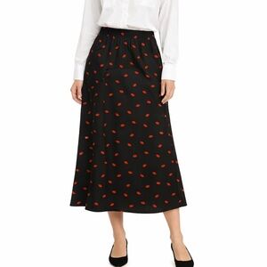 Chic and stylish black skirt with red lips. Perfect for any occasion.