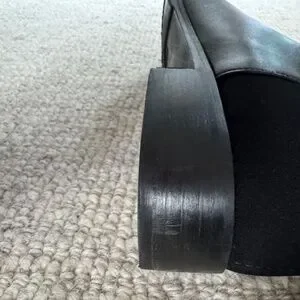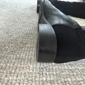noticed normal wear on pictures, scuffs on toe area, right outer ankle has tear and does on back ankle (see pics)