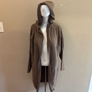 Stay cozy and stylish with this brown hooded cardigan coat. Perfect for layering in cooler weather.