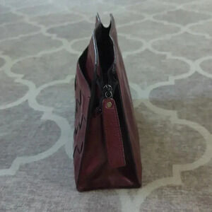 Vintage burgundy leather clutch purse with zipper closure