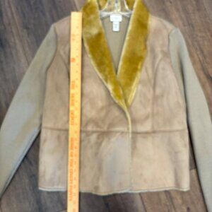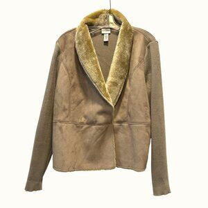 Faux Suede Knit Jacket XL Faux Fur Collar Beige
