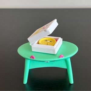 This listing includes Miniature Decor Pieces from the Shopkins Happy Places Happy Home Party Studio pack. This listing includes the table, 2 chairs, a side table, a pizza box, a pizza, and a pizza slice. All are in excellent condition.