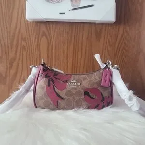 Teri mini crossbody/ shoulder Coach women's bag in pink and brown. Perfect for adding a touch of elegance to any outfit.