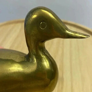 Vintage Large Solid Brass Mallard Duck Figurine Paperweight Door Stop 9” X 4”