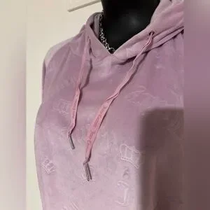 Very rare two piece light pink velvet JC suit/pajamas/loungewear. Oversized, baggy fit, labeled as XL. Hoodie is cropped. Waistband on pants is approx 17.75” across not stretched. Condition is 8/10. Been worn several times. Selling only because it’s too big for me. Im typically a M/L on top and L/XL on bottoms. Perfect for spring transition weather!