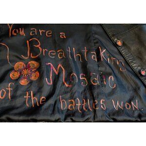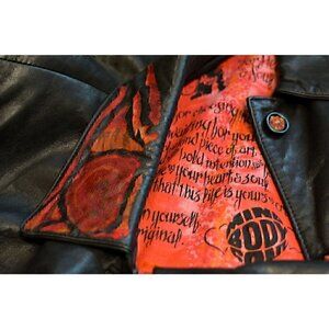 Vintage hand painted leather coat; fire, phoenix, red, gift for her sz L