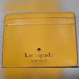 Stylish Kate Spade card holder. Vibrant yellow color safiano leather.. Perfect for organizing cards.