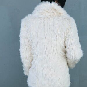 Forever 21 Cream White Chic Faux Fur Jacket Size Large Soft Fluffy Teddy