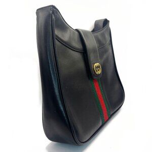 Authentic GUCCI Ophidia Logo Leather Vintage Shoulder Bag Purse Black