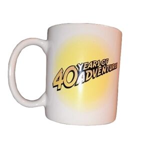 This charming limited edition Disney ceramic mug made in the mid 90's features a whimsical sun and compass design with Mickey Mouse's face and "Official Disneyana Convention 1995 Disneyland" written on it. The other side says "40 Years of Adventure".