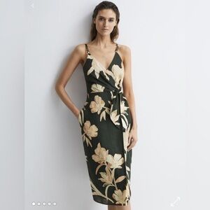 🛑SOLD🛑 REISS Alice Fitted Floral Print Midi Dress in Khaki Size 4