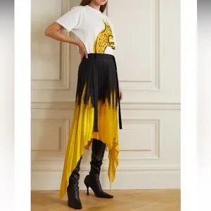 AZ Factory + Thebe Magugu asymmetric pleated black & saffron satin-twill skirt