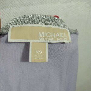 Michael Kors Knit Top Shirt Women Size XS Purple Lilac Silver Neckline Bell Slv
