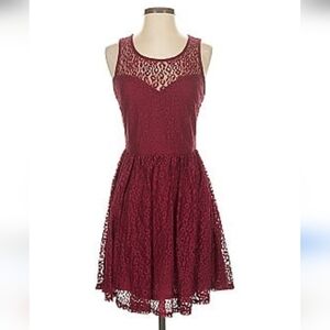 Elegant lace dress with all over leopard print in a rich burgundy color. Perfect for special occasions. Fully lined, zipper closure on the back. Size Large.