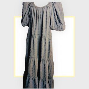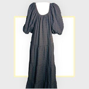 Chic black flowy dress from Zara. The dress features stylish puff sleeves and a tiered design, offering a mix of sophistication and comfort. Perfect for any occasion, this versatile piece transitions effortlessly from day to night, making it a must-have addition to your fashion collection.