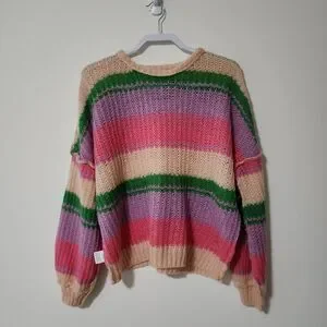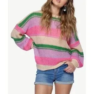 O'Neil Juniors Lake View Striped Drop-Shoulder Sweater Size S Colorful Oversized